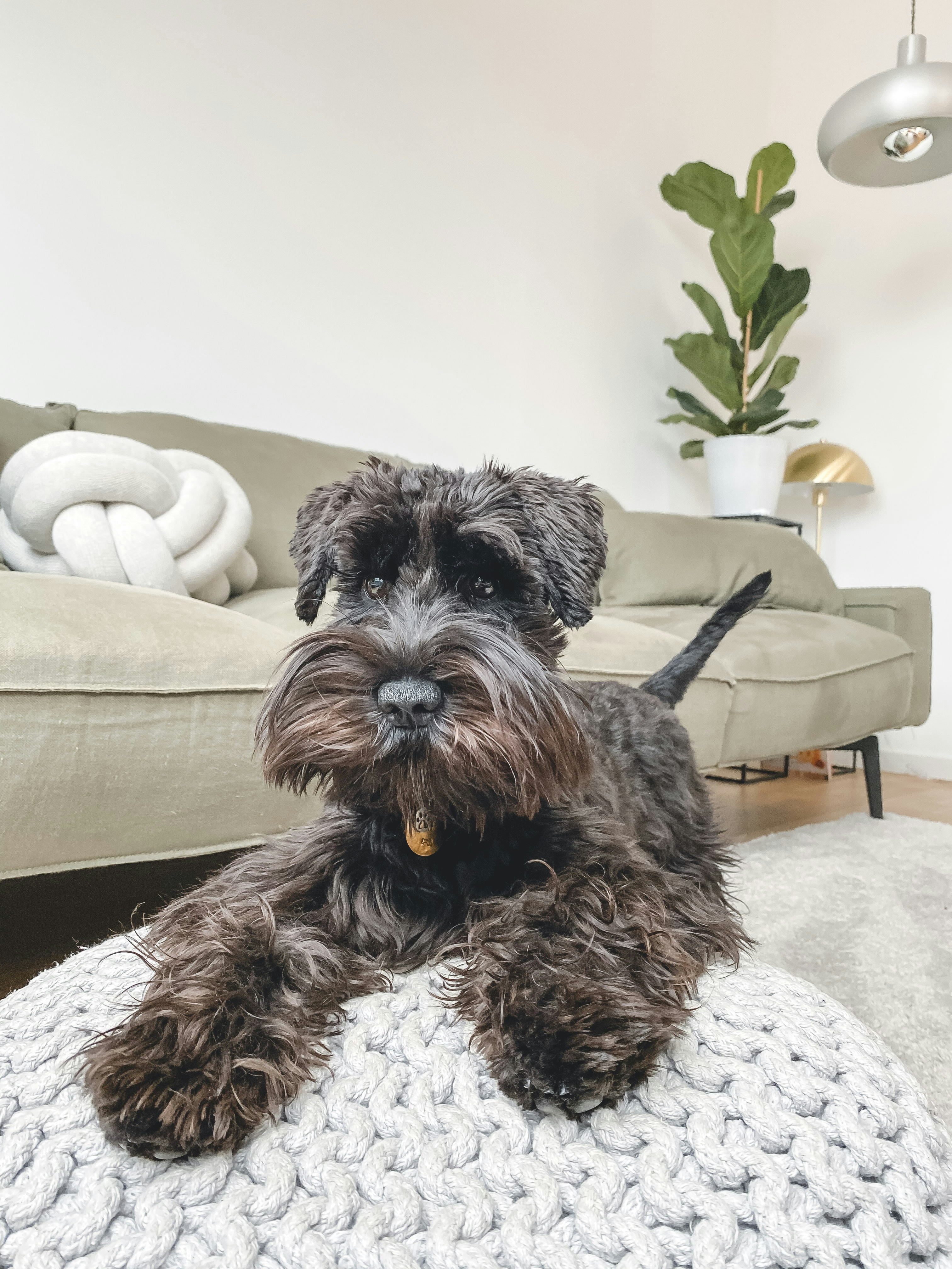 Black And Gray Miniature Schnauzer On White Couch Photo Free Image On Unsplash